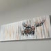 Embark on a journey through "The Jeweled Frost"—a panoramic mixed media painting that unveils the regal presence of a moose amid the enchanting embrace of abstract aspen trees. Bathed in deep jeweled tones, this artwork weaves texture, movement, and subtle discovery into a symphony of nature’s frost-kissed beauty.