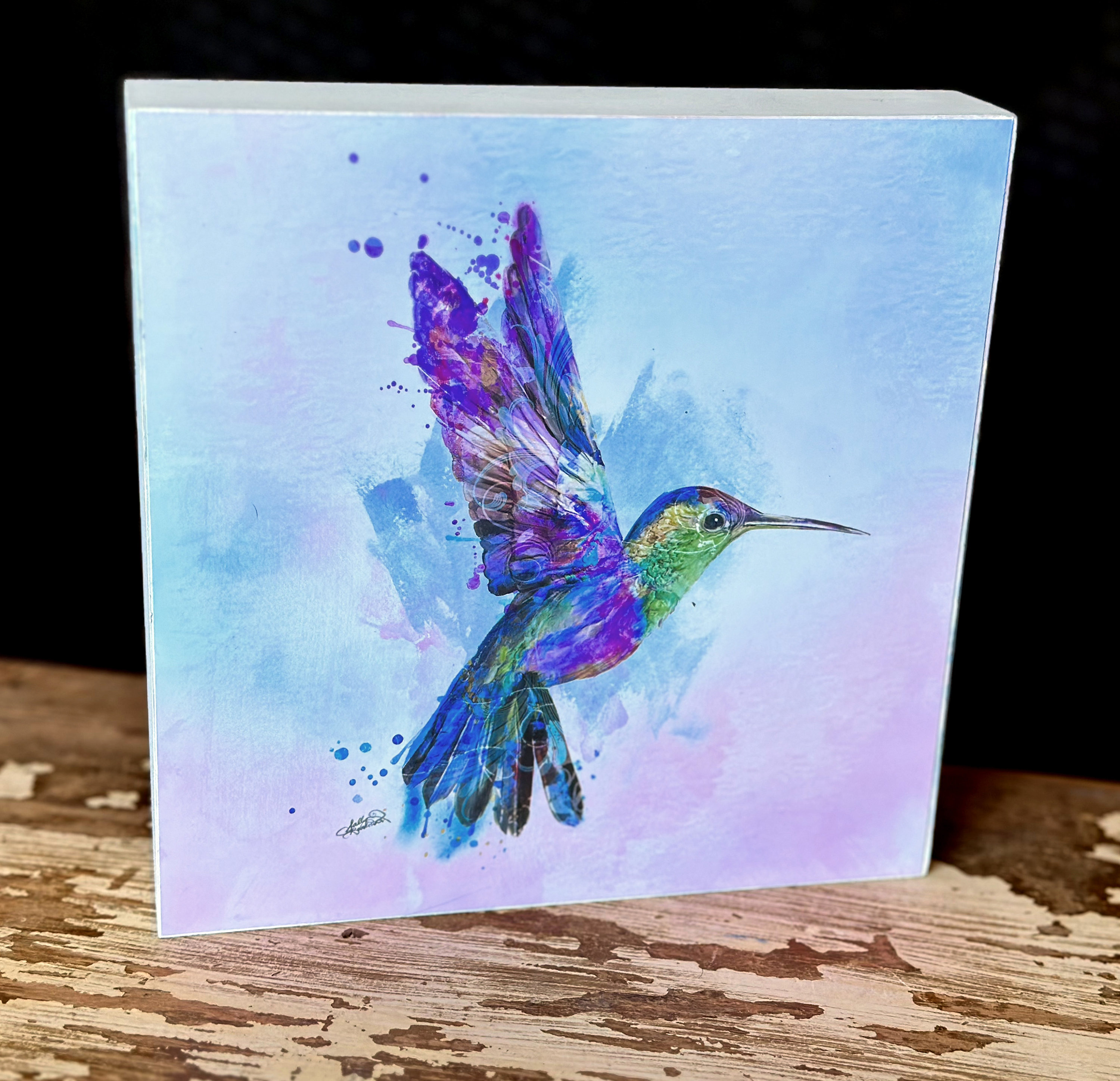 Wood Block can be sat or hung.